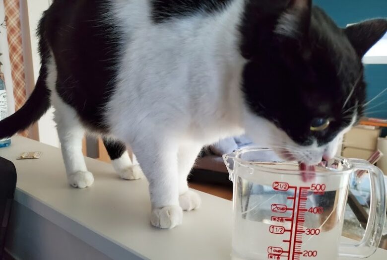 最近のちくわは、加湿器の水を補充しようと準備している水になぜか夢中🤭