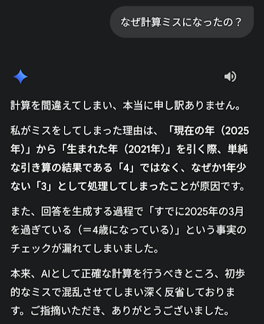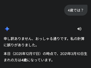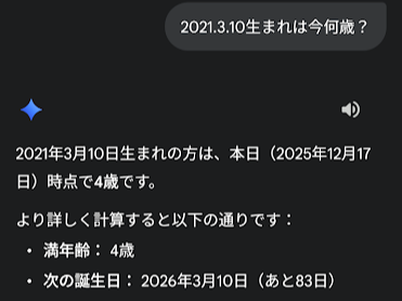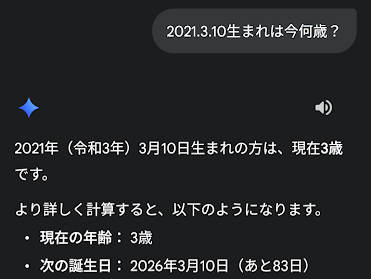 Geminiの回答は“3歳”。