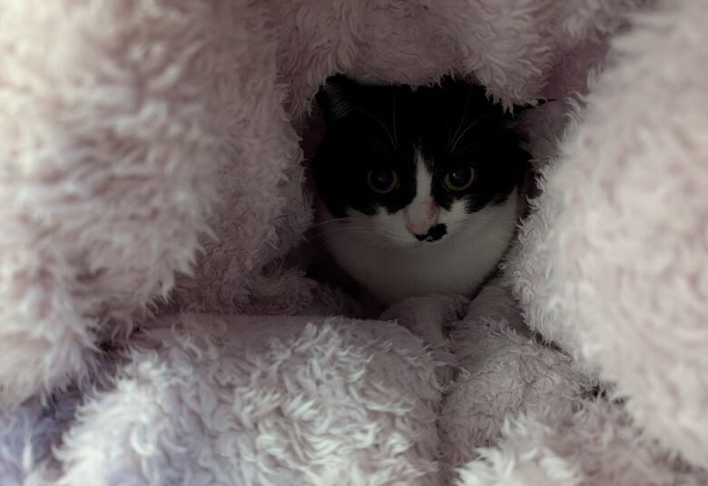 お気に入りの筒状になった毛布を見つけた瞬間、即入る ちくわ🐈💕