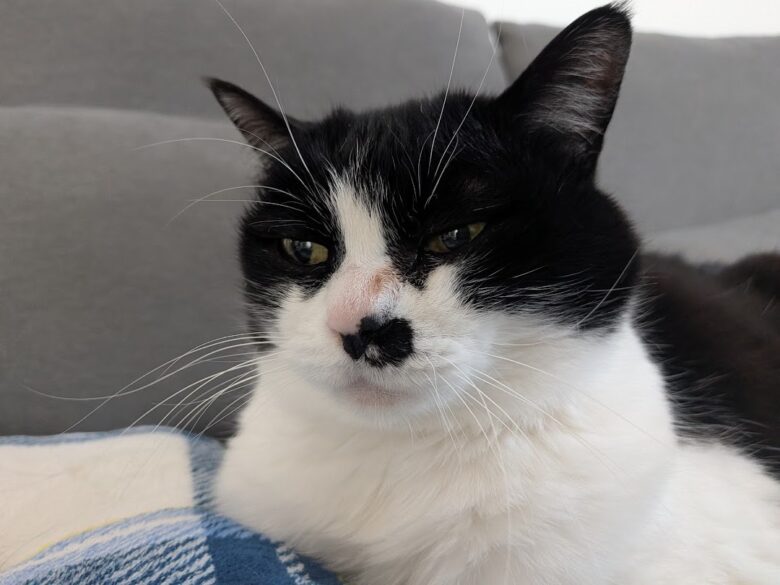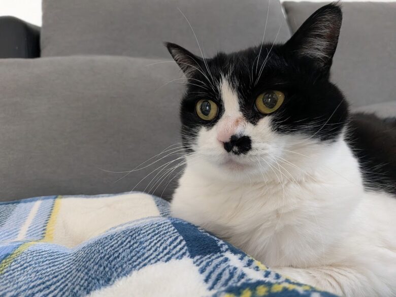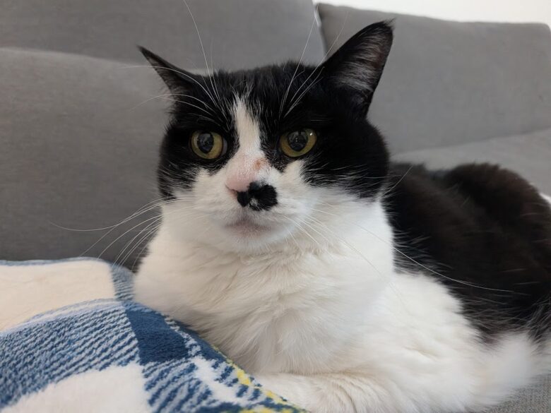 ご飯を入れてくれるのをじっと見つめて待つちくわ。